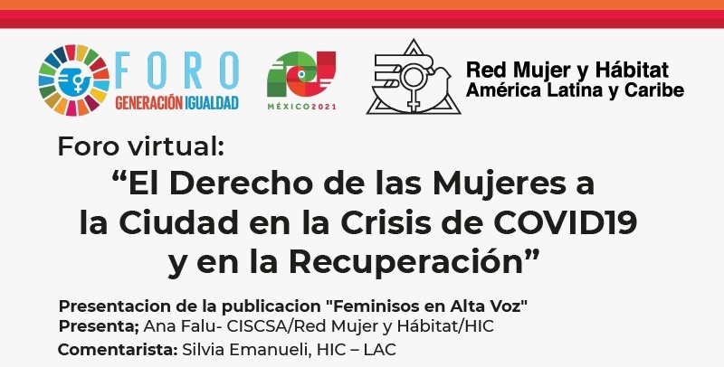 Foro virtual: «El Derecho de las Mujeres a la Ciudad en la Crisis del COVID19 y en la Recuperación» 29 marzo, 2021 by SUR