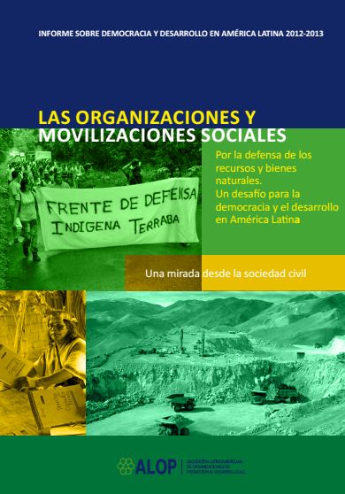 La Asociación Latinoamericana de Organizaciones de Promoción al Desarrollo – ALOP presenta su Informe sobre Democracia y Desarrollo en América Latina 2012-2013: Las organizaciones y movilizaciones sociales por la defensa de los recursos y bienes naturales. Un desafío para la democracia y el desarrollo en América Latina.