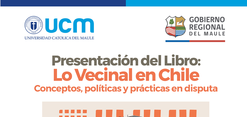 Sr. Pablo Milad Abusleme, Intendente y Ejecutivo del Gobierno Regional del Maule; Sr. Juan Andrés Muñoz Saavedra, Presidente de Consejo Regional del Maule; Sr. Patricio Oliva Lagos, decano de la Facultad de Ciencias Sociales y Económicas de la Universidad Católica del Maule y Patricia Boyco Chioino, Presidenta SUR Corporación de Estudios Sociales y Educación, saludan muy cordialmente y tienen el agrado de invitar a usted a participar de la Presentación del libro: “Lo vecinal en Chile: Conceptos, políticas y prácticas en disputa”.