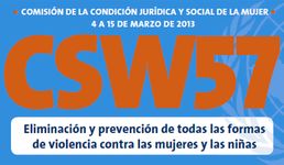 El 57º periodo de sesiones de la Comisión de la Condición Jurídica y Social de la Mujer (CSW57), que tiene lugar en la Sede de las Naciones Unidas en Nueva York del 4 al 15 de marzo de 2013, incluye como tema prioritario la eliminación y prevención de todas las formas de violencia contra las mujeres y las niñas. Se centra en dos áreas clave: la prevención de la violencia y la prestación de servicios de asistencia/respuestas a las sobrevivientes de la violencia.