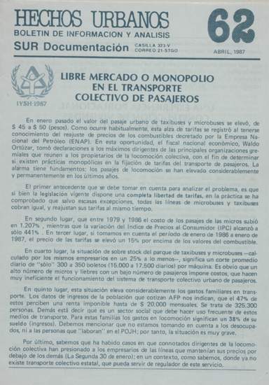 Libre mercado o monopolio en el transporte colectivo de pasajeros Vol. 62