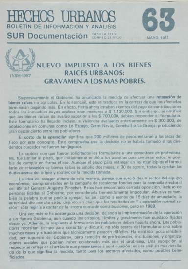 Nuevo impuesto a los bienes raíces urbanos: gravamen a los más pobres Vol. 63