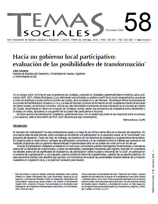 Hacia un gobierno local participativo: evaluación de las posibilidades de transformación Vol. 58