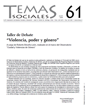Taller de Debate “Violencia, poder y género”. A cargo de Roberto Briceño-León, realizado en el marco del Observatorio “Ciudad y Violencias de Género” Vol. 61