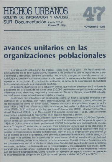Avances unitarios en las organizaciones poblacionales Vol. 47