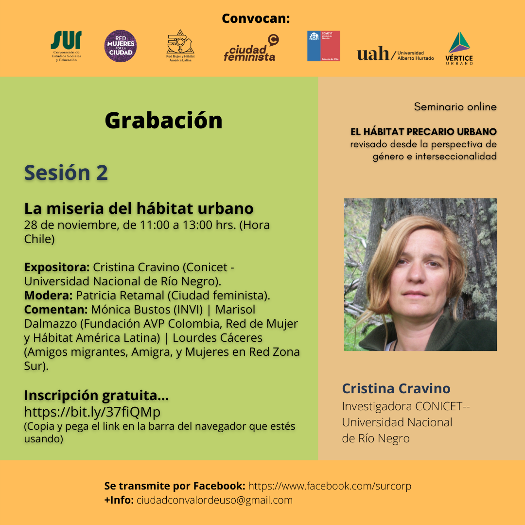 Sesión 2 del Seminario online «El hábitat precario urbano revisado desde la perspectiva de género e interseccionalidad» (20 y 28 de noviembre, 5 y 12 de diciembre de 2020)